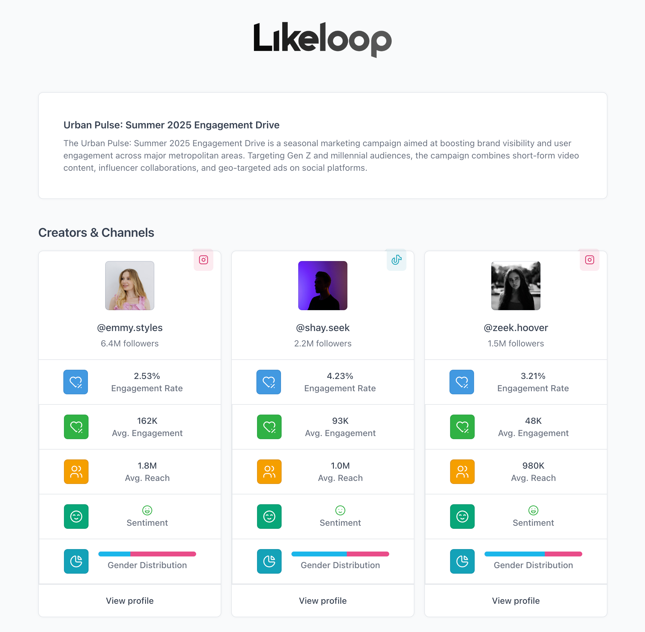 Easily build and organize influencer shortlists tailored to the campaign's goals.